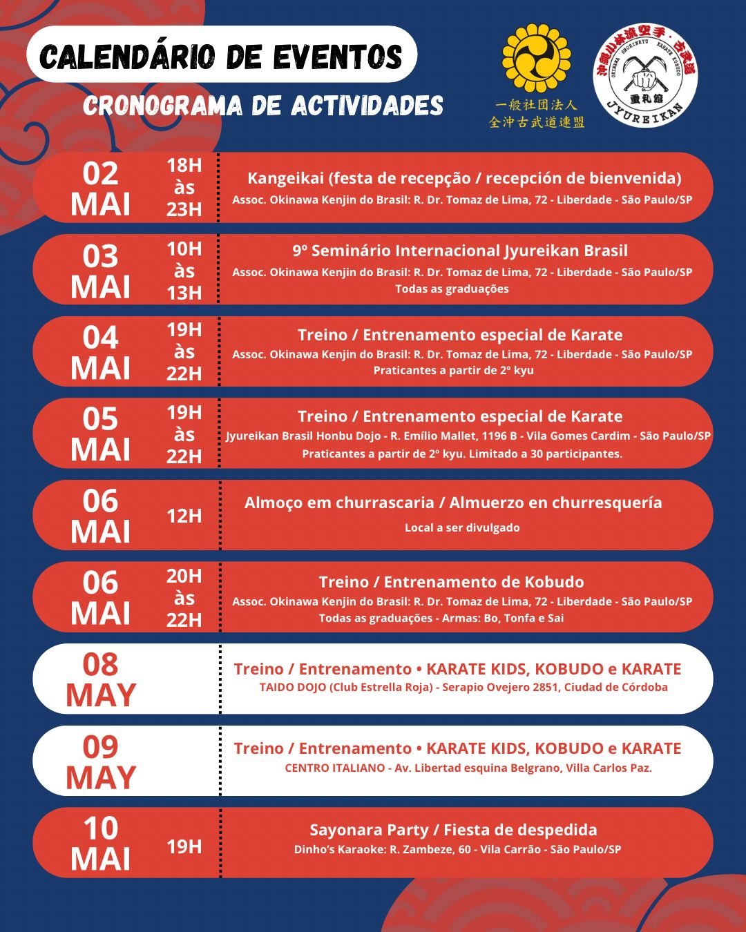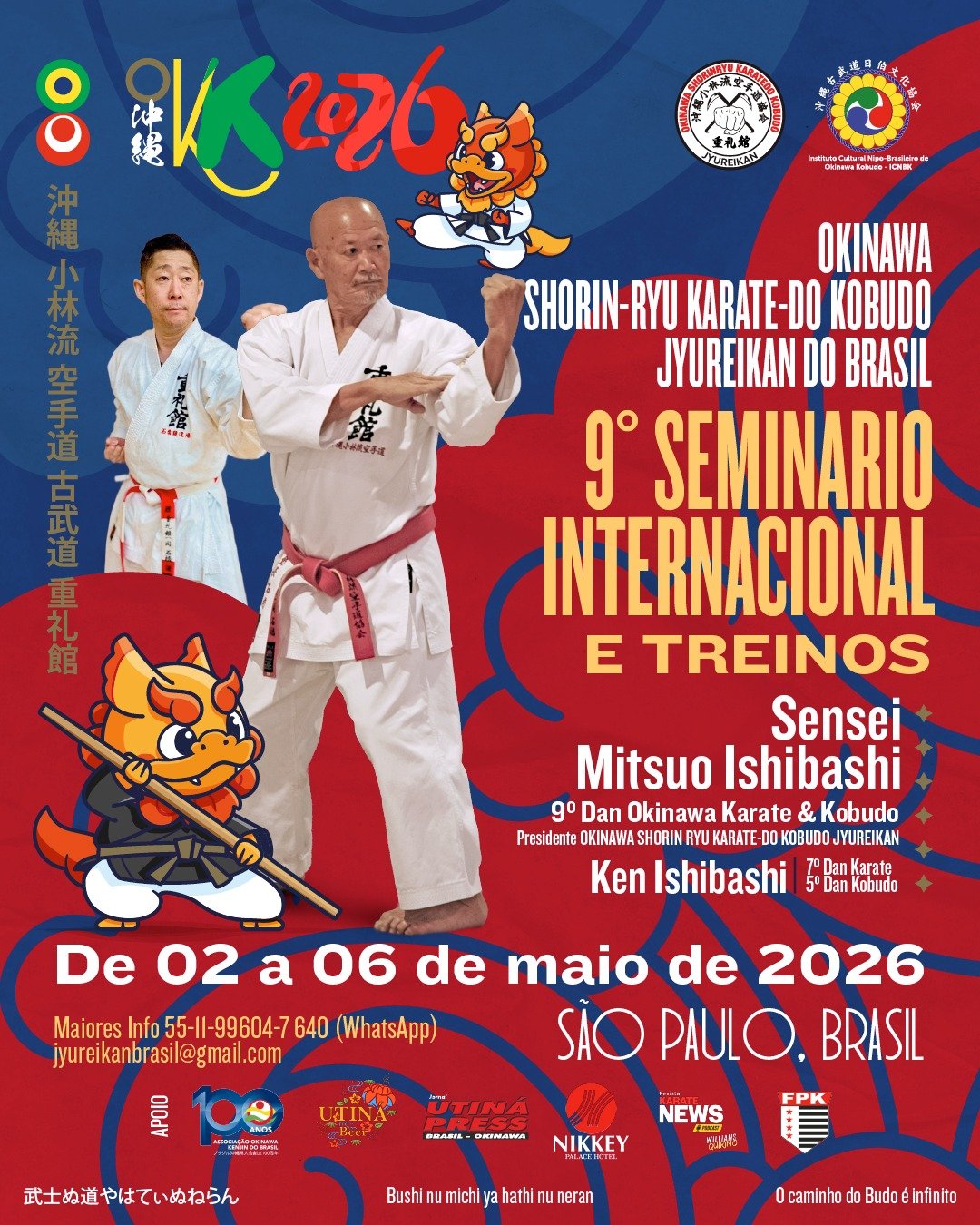 Vamos ter a felicidade de receber novamente no Brasil o mestre Mitsuo Ishibashi Hanshi 9º Dan, fundador da nossa escola e, desta vez, em uma visita ainda mais especial! Ele virá acompanhado de seu filho, Ken Ishibashi (7º Dan em Karatê e 5º Dan em Kobudo), que estará pela primeira vez no Brasil! 🇧🇷✨