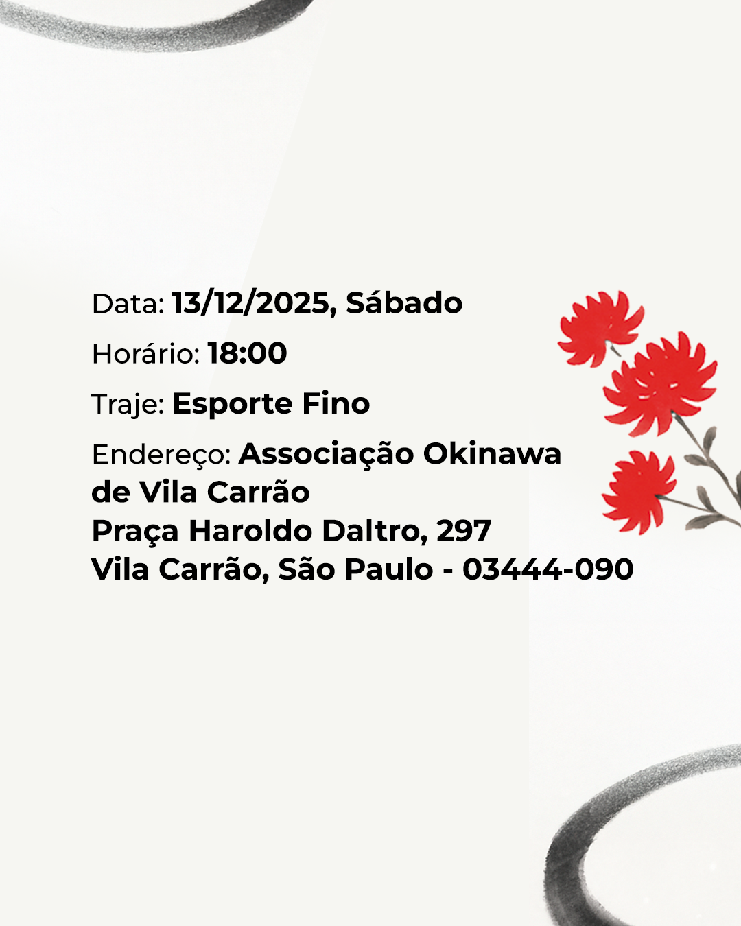 📍Endereço: Associação Okinawa de Vila Carrão, Praça Haroldo Daltro, 297 – Vila Carrão, São Paulo – 03444-090